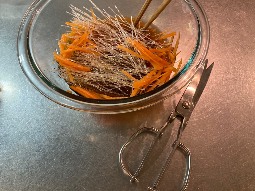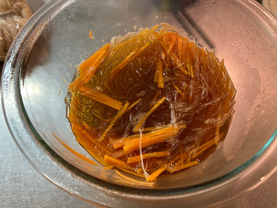 まだこの時点では汁けがありますが、そのままあら熱とるのに放置していると春雨が水分吸っていい感じになります^^