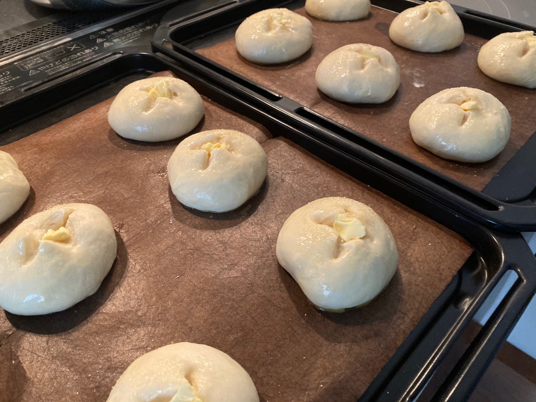 バターシュガーは2次発酵が終わったら卵を塗ってグラニュー糖をまぶし、