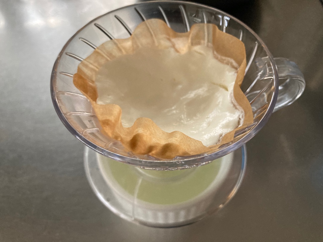 私は1人分なのでコーヒードリッパーでつくりましたが、もっとたくさん作りたいときはザル+キッチンペーパーでもできますので、