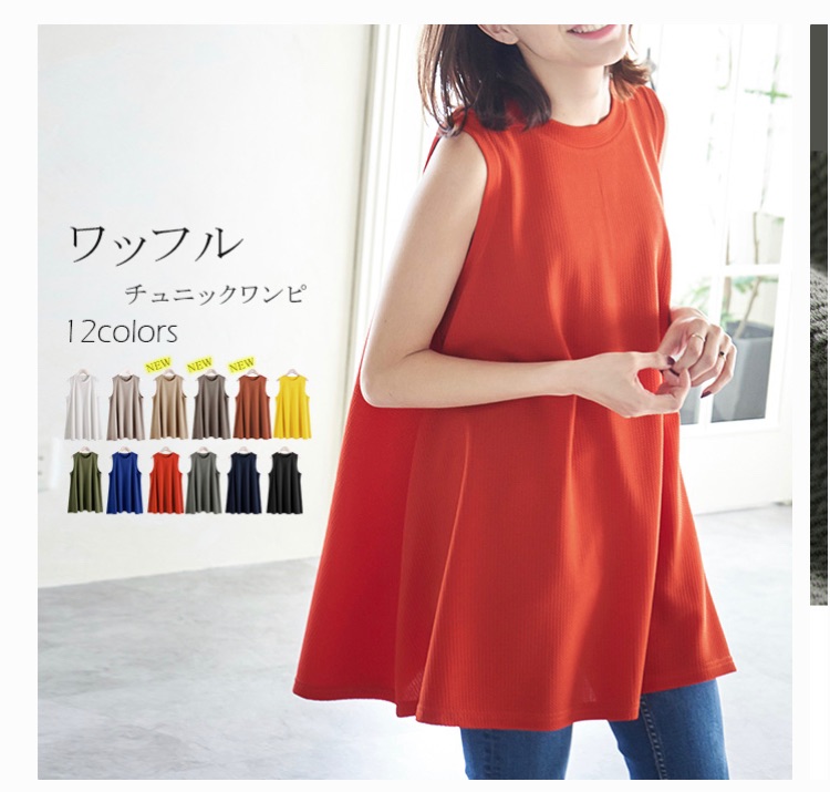 お尻がすっぽり隠れる上にノースリーブの腕ぐりのカットが二の腕が強調されにくいアラフォー以上にも着やすいデザイン!