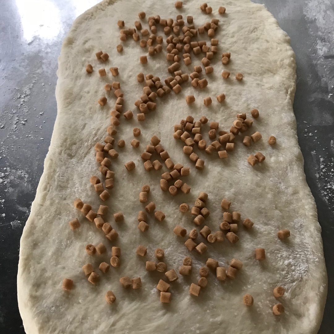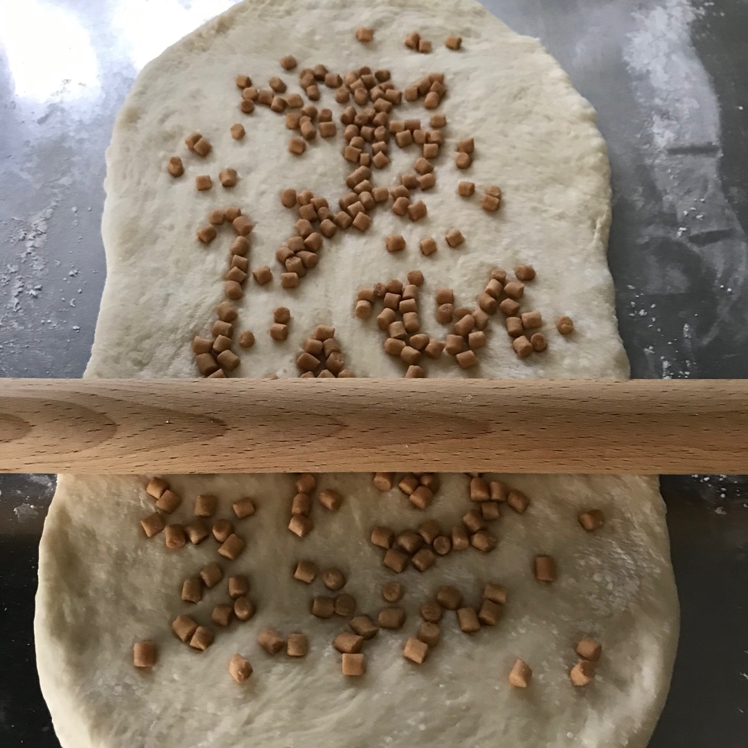 普通の食パンの生地を伸ばしてこのように置いてから・・・