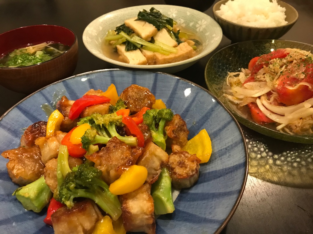 メインが揚げ物こってり系だったので、副菜はあっさりと厚揚げの煮浸し^^