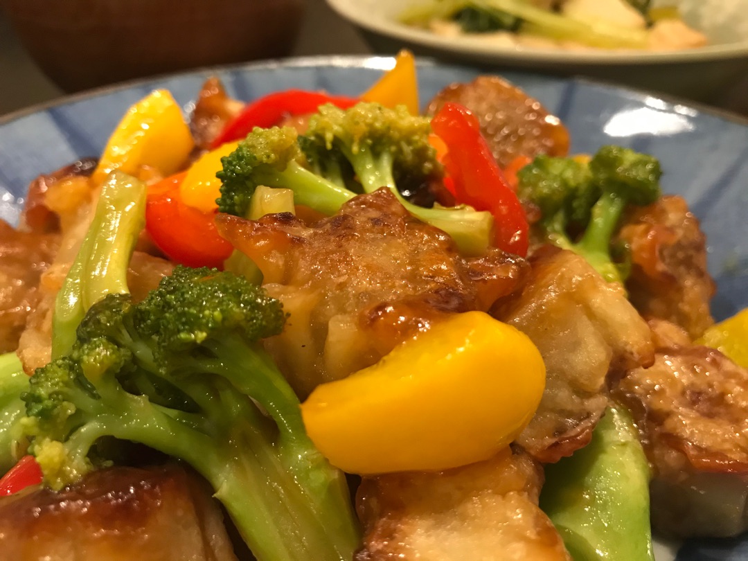 パプリカに火が通ったらさっきのしゅうまいを戻して甘酢あん絡めて最後にレンチンしたブロッコリーを入れて出来上がり!^^