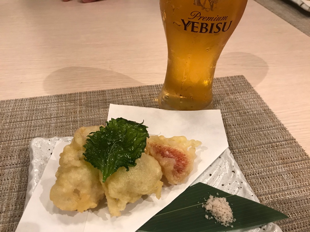そして、白子の天ぷらー!横はイチジクの天ぷら!(≧▽≦) そして締めに出てきたお寿司が圧巻