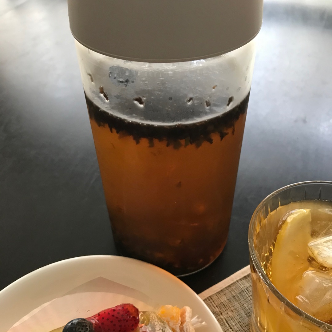 お供はいつもの作り置きのアイスティー♪ 今年はこのアイスティーをよく作るので、ペットポトルのコーヒー買う量が減りました!