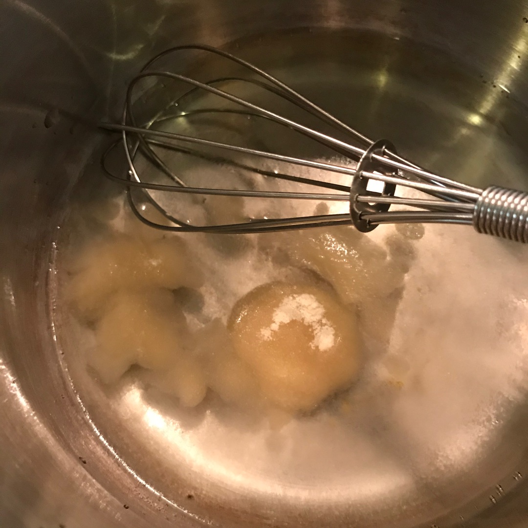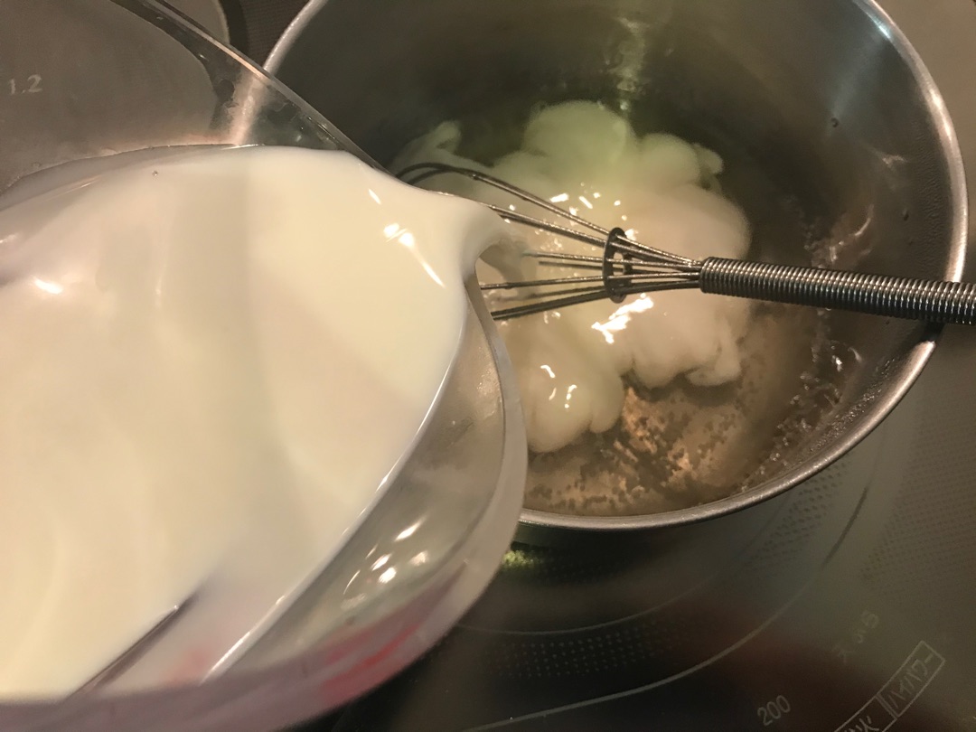 砂糖30gを入れて火を止めてから人肌に温めた牛乳をIN~♪^^