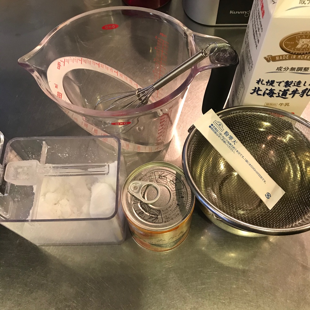 今日は朝出かける前に晩ごはんと牛乳寒天をつくっていきました!^^