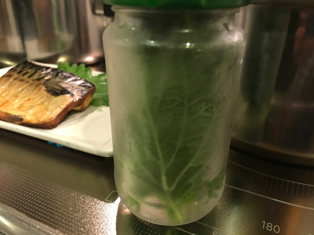 大葉はこのように水を少し入れた瓶に立てて保存すると新鮮なまま長持ちします!