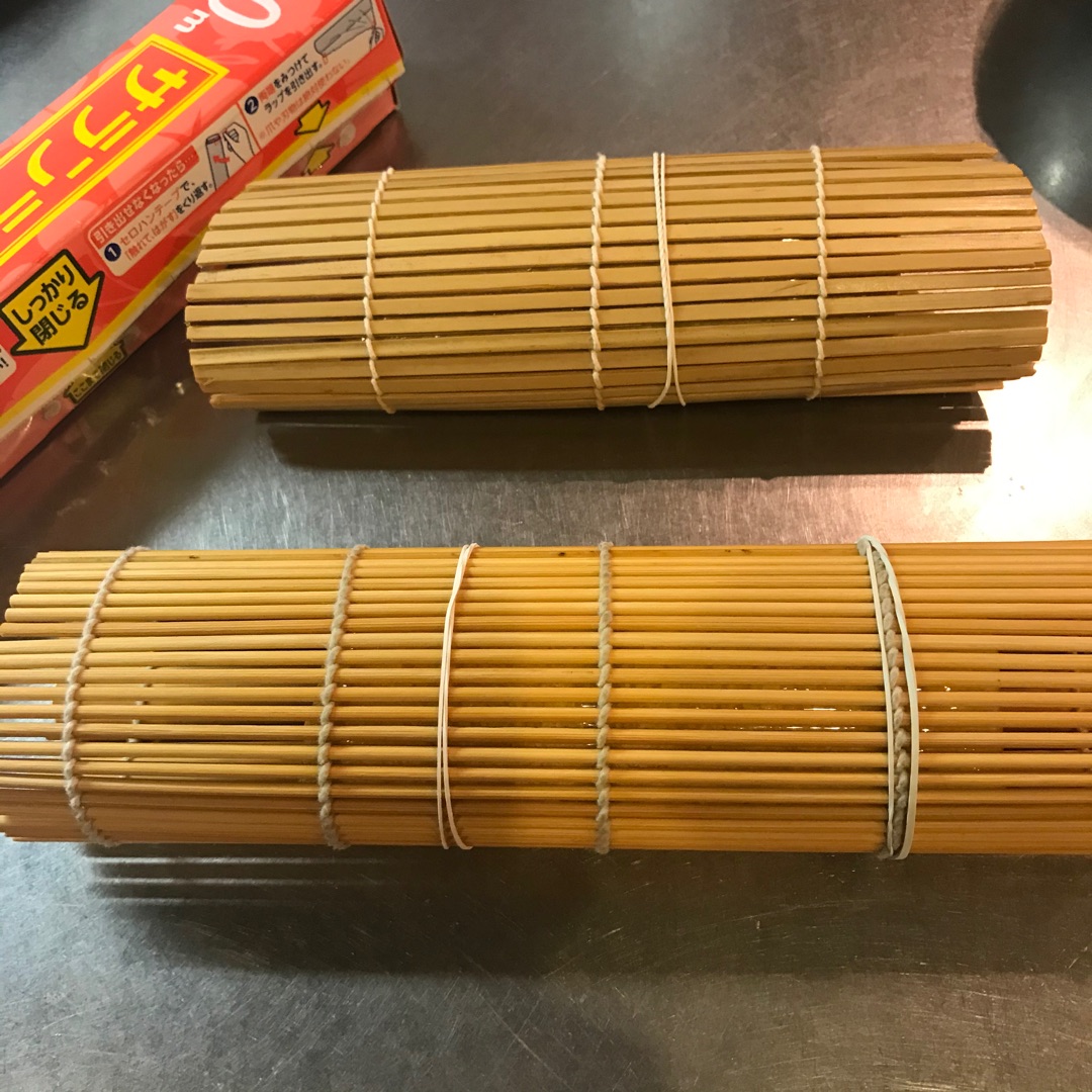 巻きすは1個しかないので2個目はざるそばのざるを使ってます