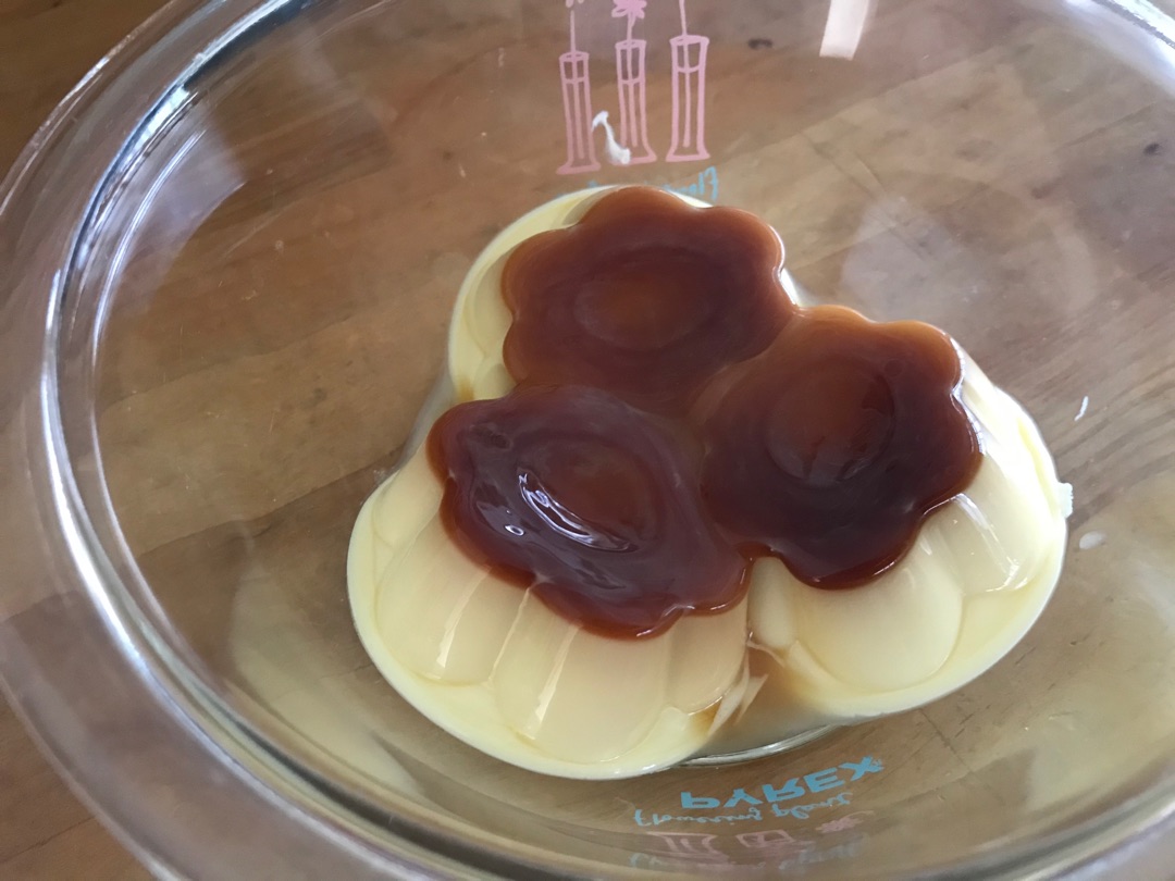 これはちょっとチンしすぎて完全に混ざっていますが、多少カラメルが残ったりしていてもOKですよ^^