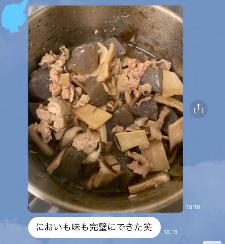 今日はいつも私がつくるこんにゃくの炒め煮の写真が送られてきました^^