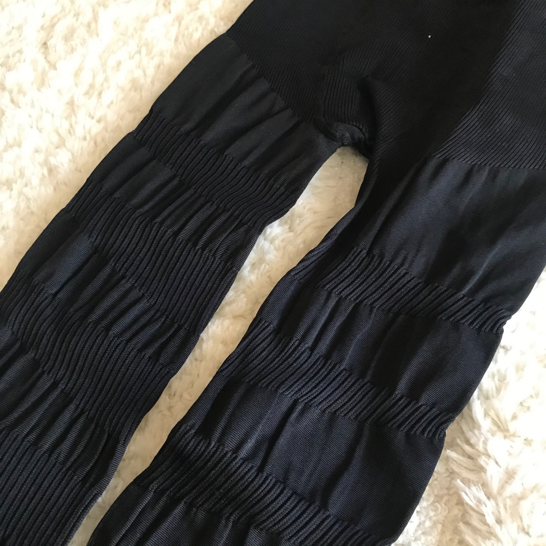 この手の着圧レギンスはいかにも「下着」というものが多く、パンツの下などに仕込んで履くものが多かったのですが、