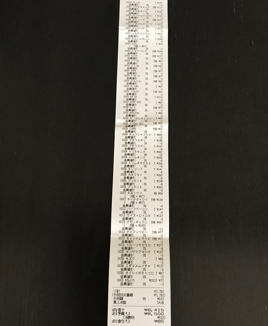 今週はレシート写真のみですみません