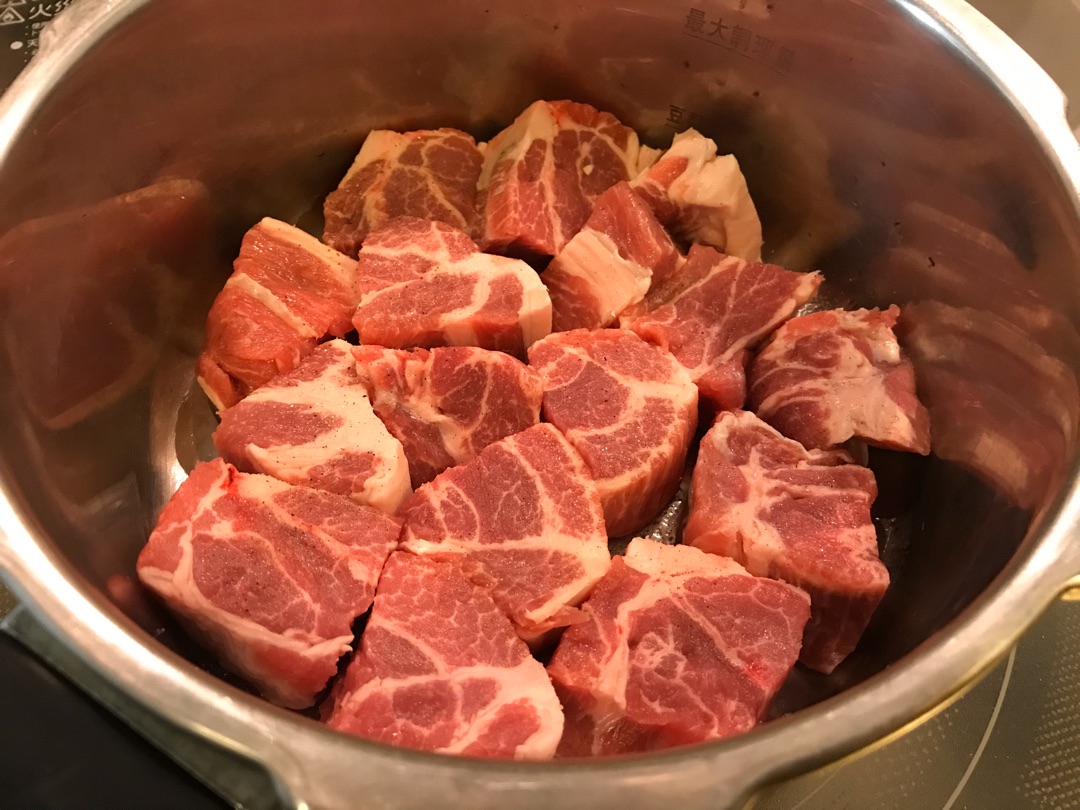 そして、使ったかたまり肉はグラム98円のお安い肉ですが、圧力鍋で調理するので固さは全くありません!
