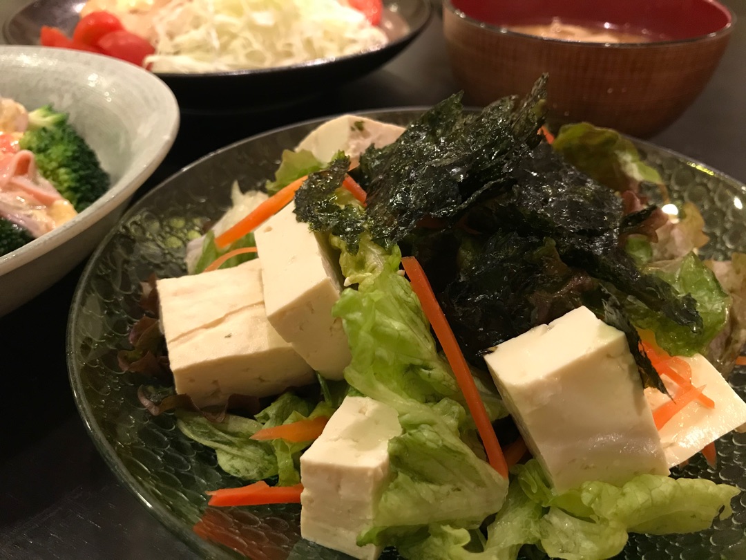あとはいつもの豆腐サラダ!上には韓国海苔!