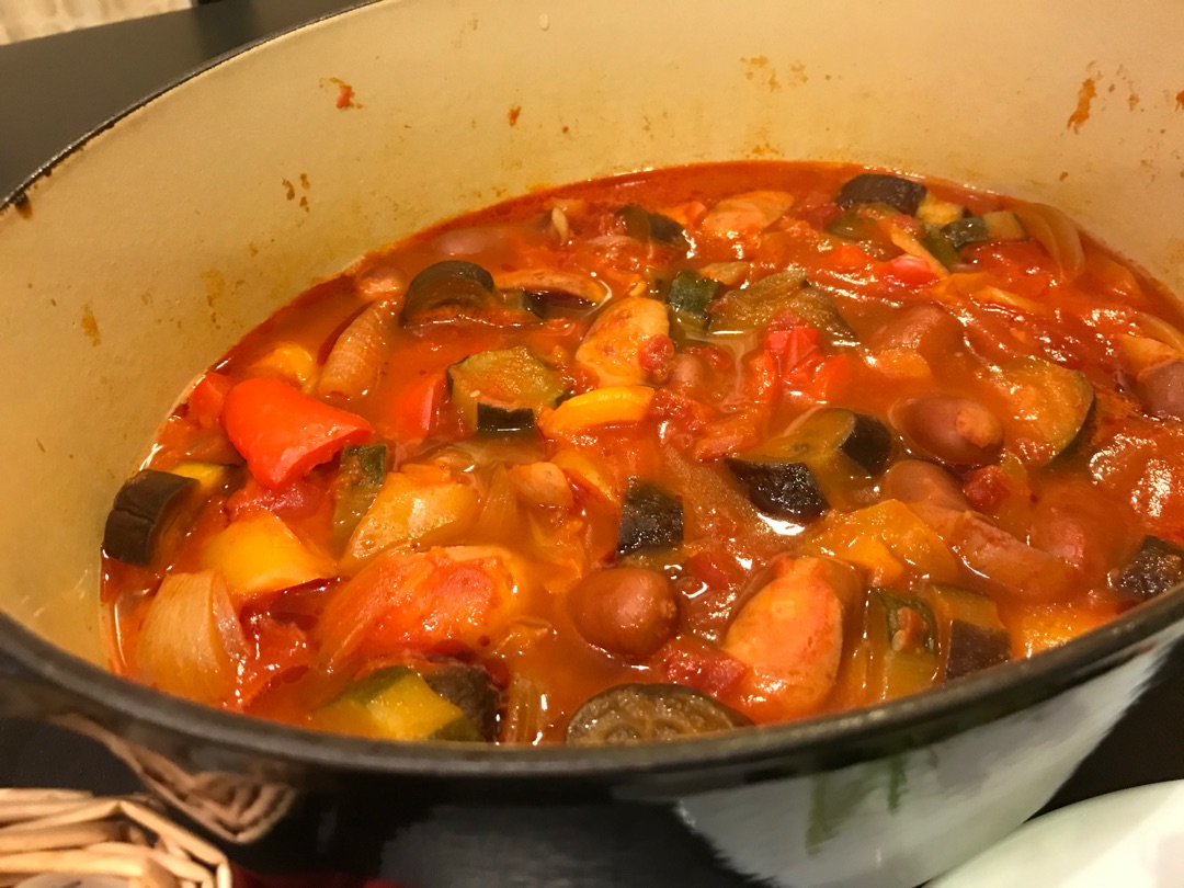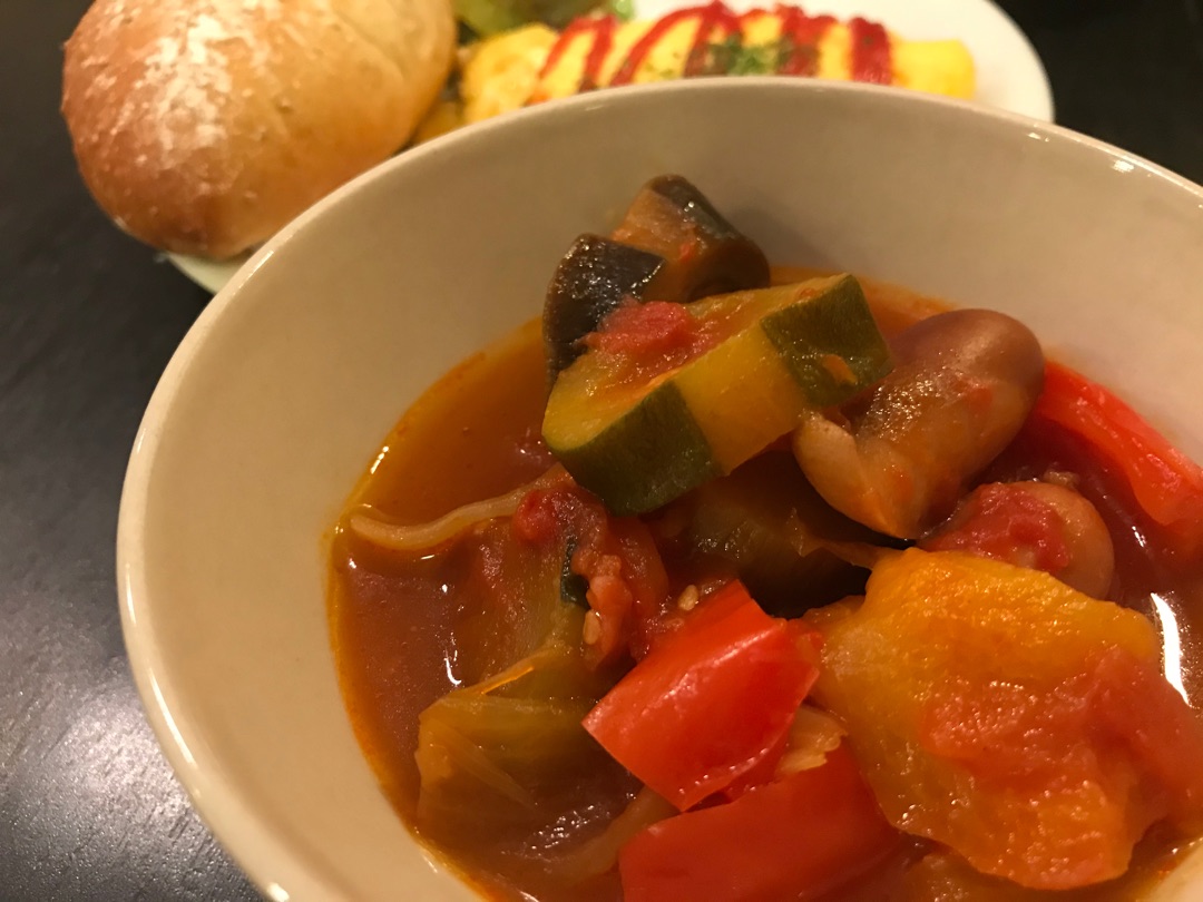 このラタトゥイユ、在庫整理でつくったので当然肉らしきものは入っていないので~