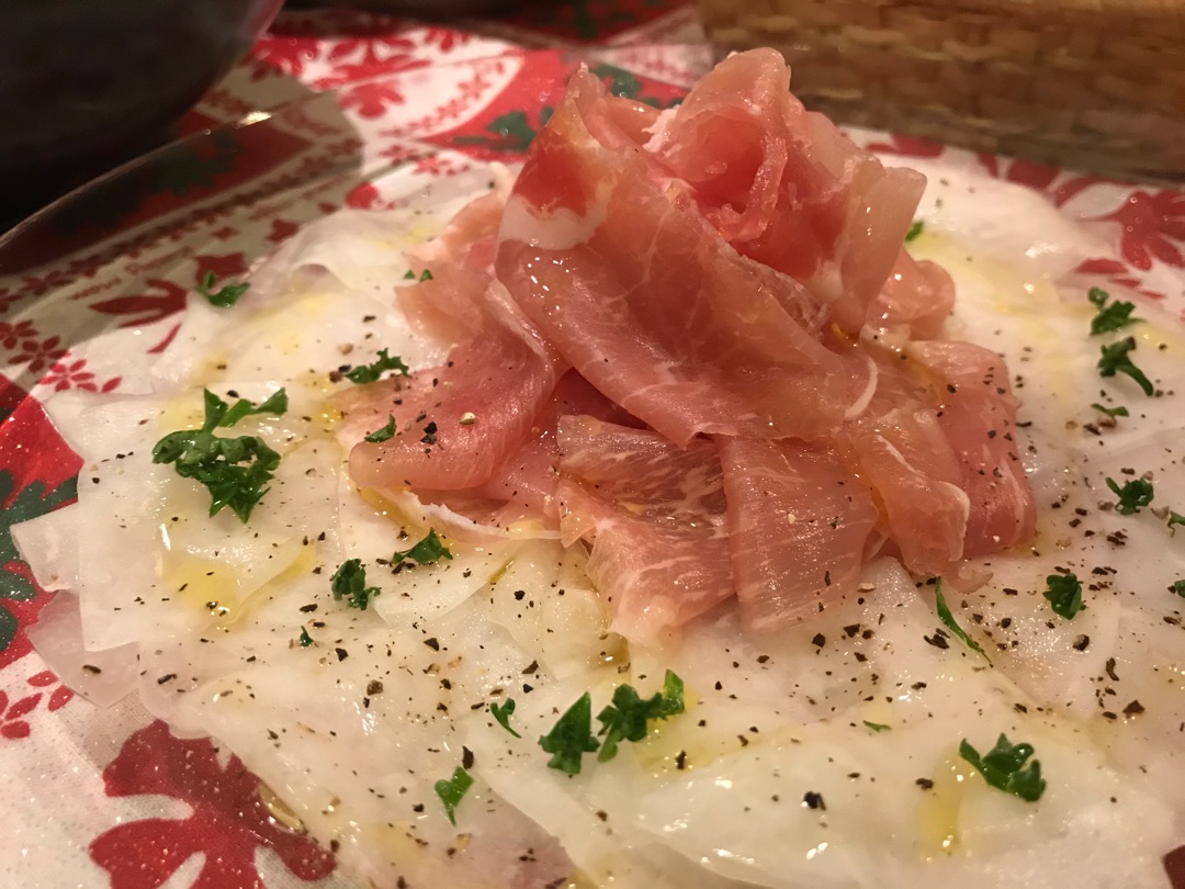 あとはカブをスライスして軽く塩をしたものに生ハムを盛り合わせて・・・