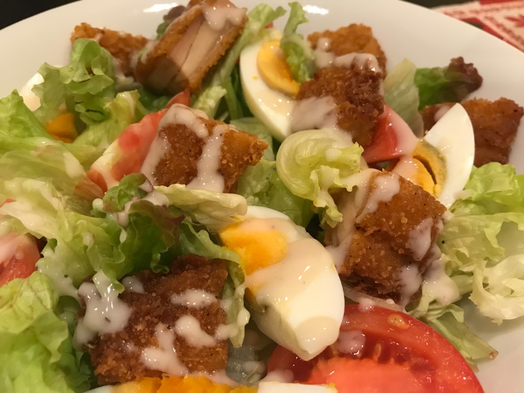 あとはフライドチキンを使ったボリューミーなサラダ!やっぱりクリスマスなのでチキンはちょっと入れたい![]()