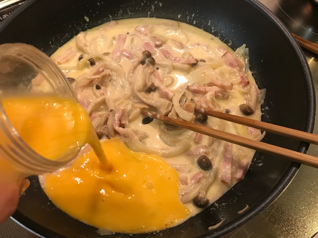 で、もう一つのカルボナーラが家庭でつくるの難しい原因の卵が固まっちゃう件ですが、