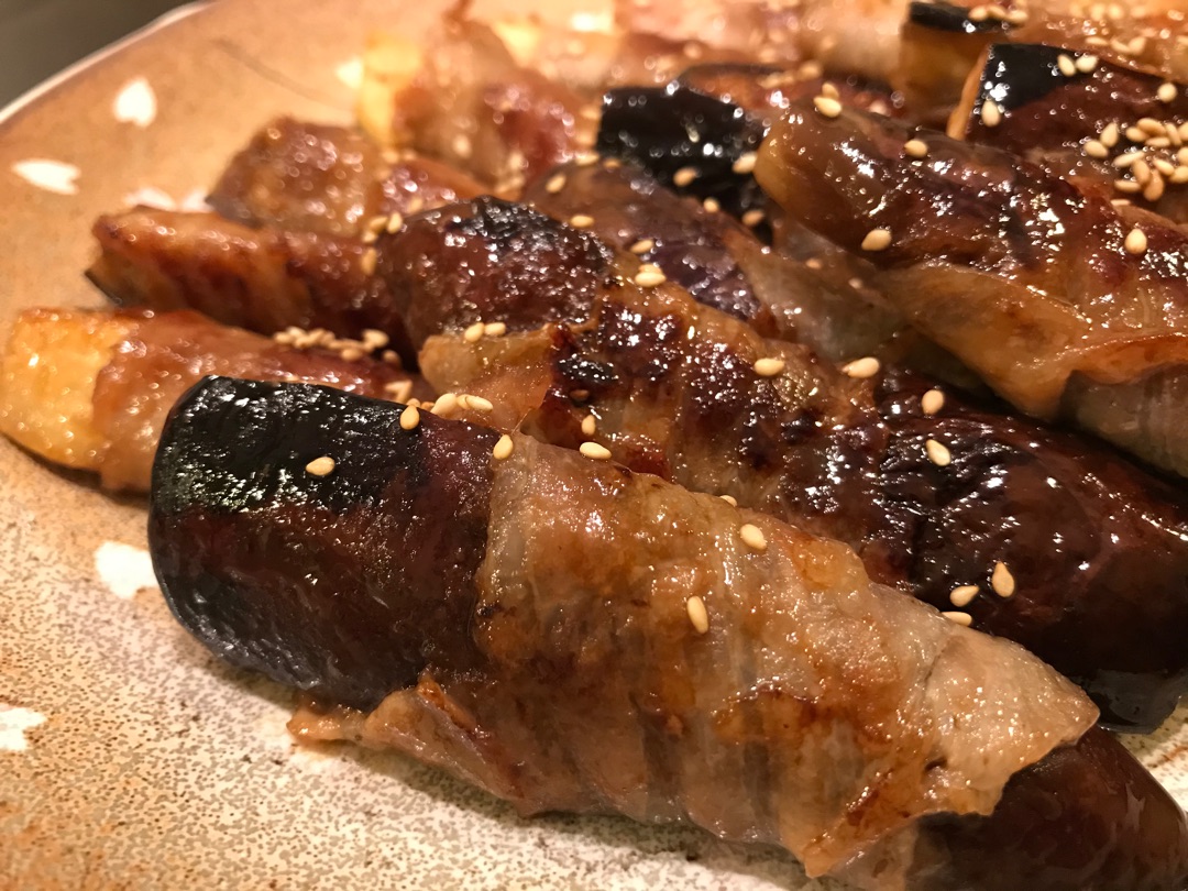 豚バラナスにするつもりでしたが、最近味噌味が多いかなとちょっと思ったので、急遽予定を変更にしてナスの豚バラ巻きにしてみました
