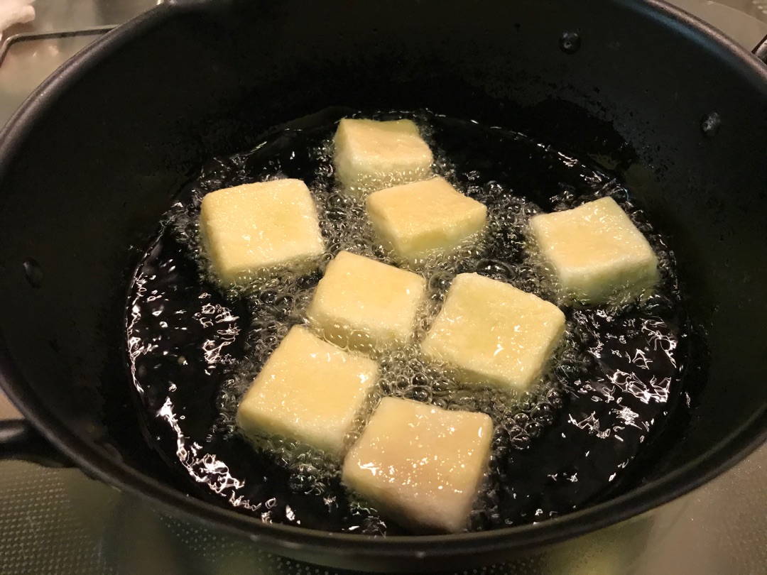 高野豆腐の揚げ煮は、揚げるのは短時間で、