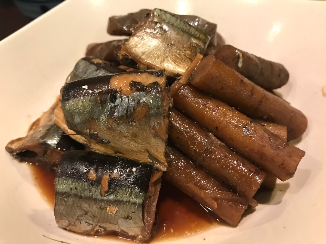 サンマとごぼうのしょうが煮です。こんにゃくも一緒に煮てカサマシしています!^^