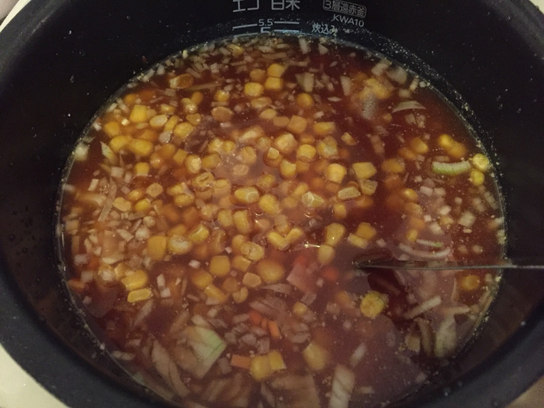 画像は前回の使い回しなのでコーンとかにんじんとか入っていますが、昨日は玉ねぎと鶏モモ肉を入れました。