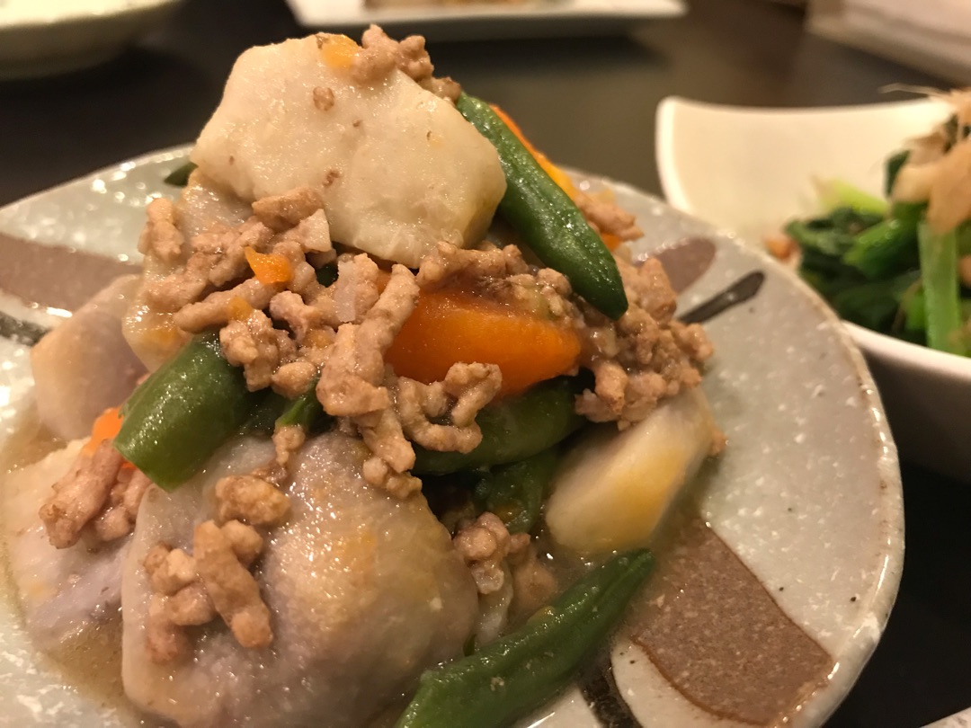 里芋のそぼろ煮。里芋だけだとちょっと寂しい感じだったので(見た目も量的にも)にんじんといんげんも入れました