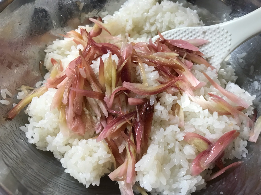 茗荷の甘酢漬けは良く作りますが、ご飯に入れたことはありませんでした。