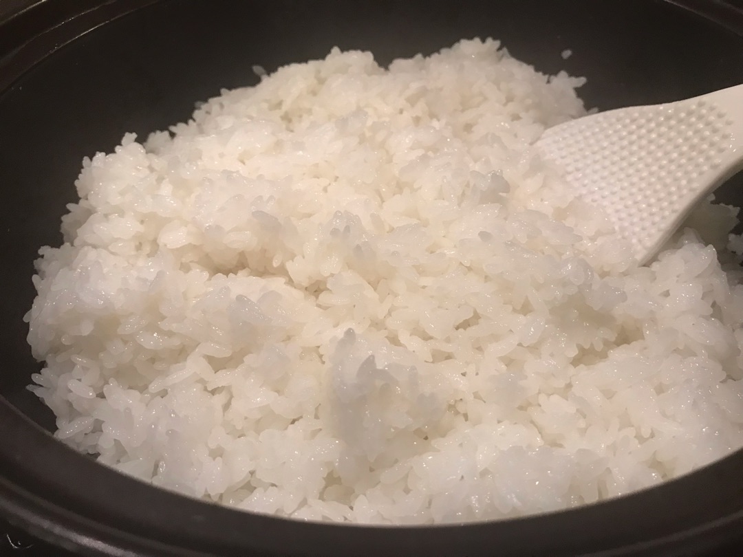土鍋で炊いたごはん、フタをあけるとごはん粒が立ってます!