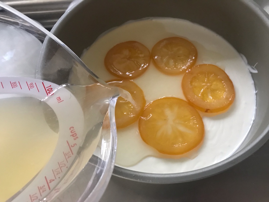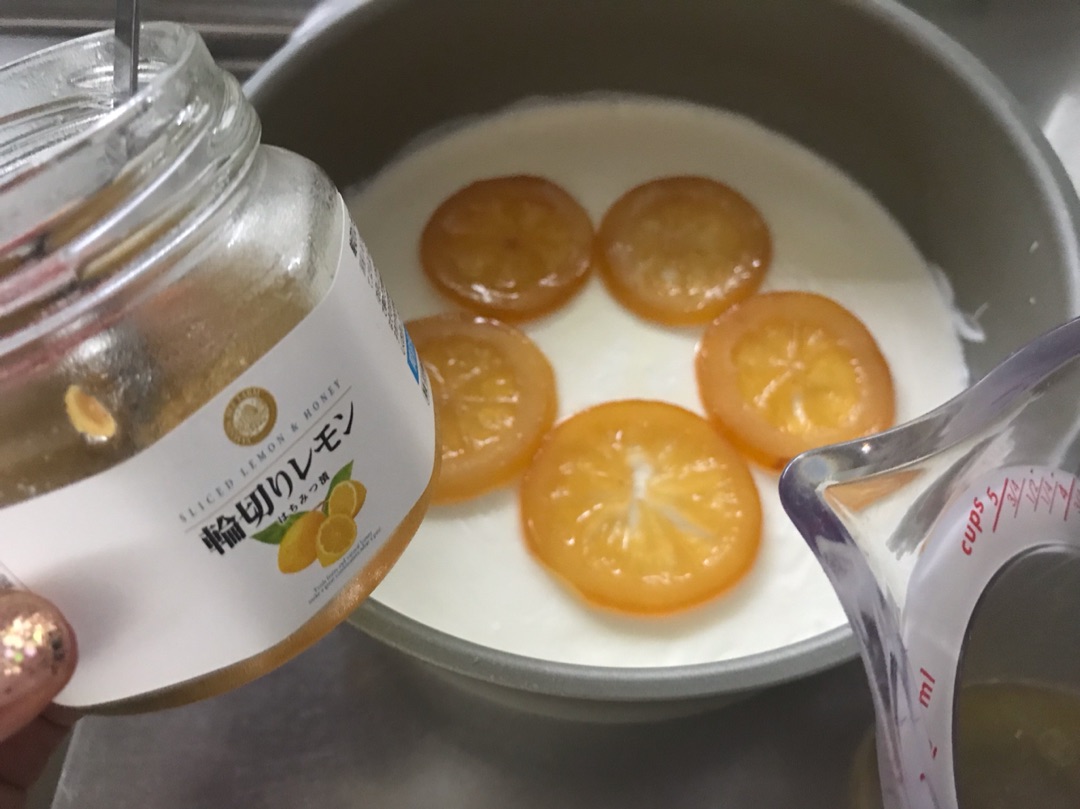 翌朝、ちゃんと固まっていたので、輪切りレモンを上に乗せて・・・・
