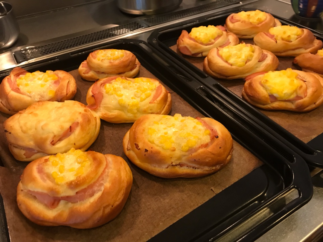 お惣菜パンはお安いものでもお店で買うと1個100円ぐらいしますので、家でつくって一番オトクだな~と思うのはこの惣菜パンですね!(笑)