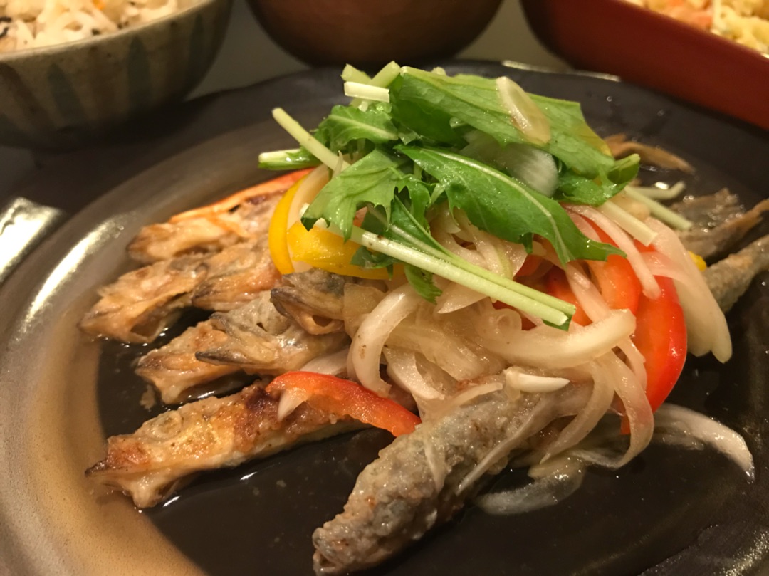 ししゃもってそのままだと晩ごはんのおかずになりにくいと思いますが、このように南蛮漬けにするとまーまー夜に持ってこれるおかずになるんじゃないかと思います