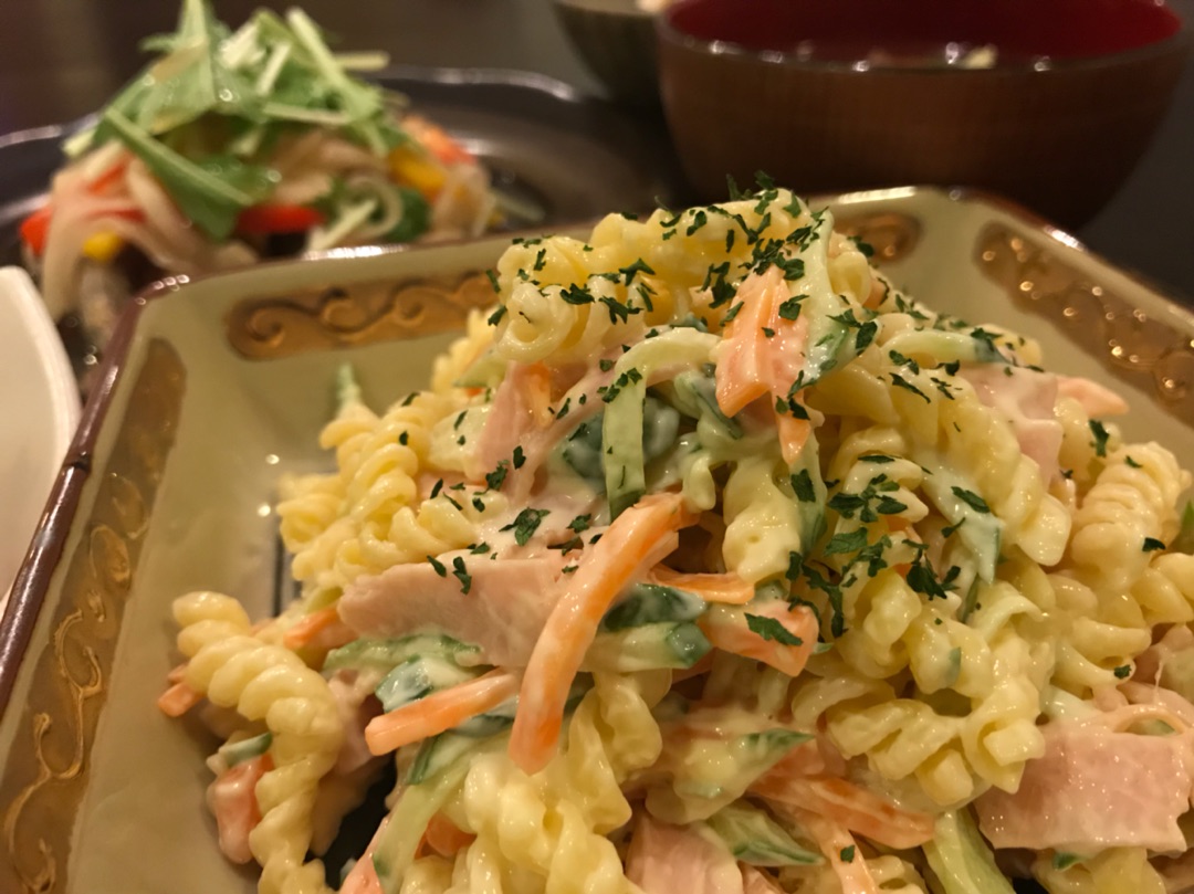 スパサラにしようと思っていたら肝心のスパがなかったので普通にマカロニサラダにしました