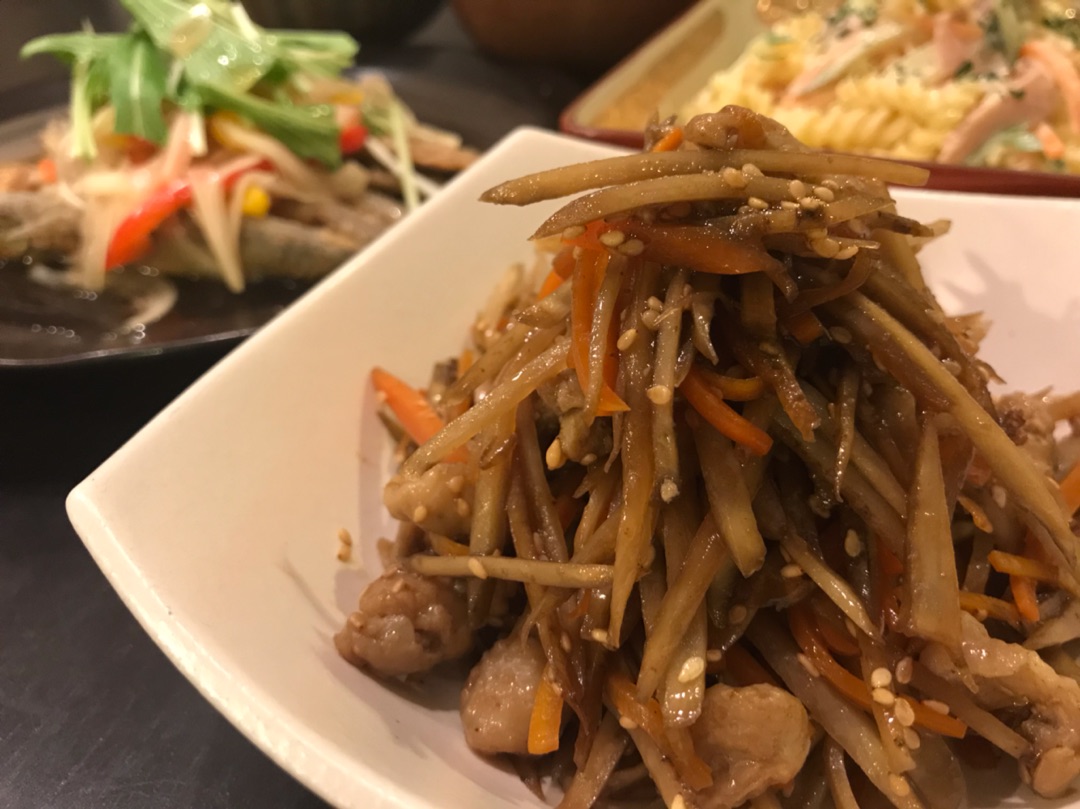 っていうか、スパサラだったら副菜が2品とも形状が同じ細長いものになってしまったところだったわ!