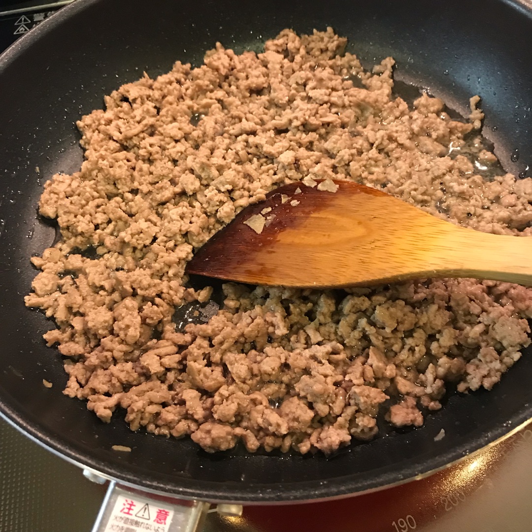 麻婆の挽き肉を炒める前に薄焼き卵をつくっておくと、フライパンも効率よく使えて時短です