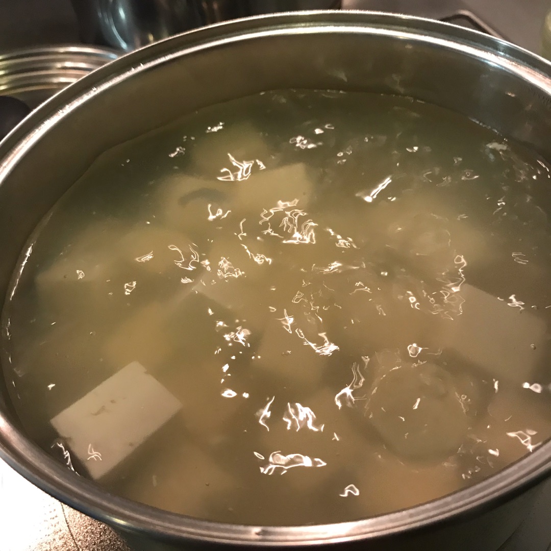 沸騰するお湯の中で豆腐が浮き上がってくるぐらい茹でます!