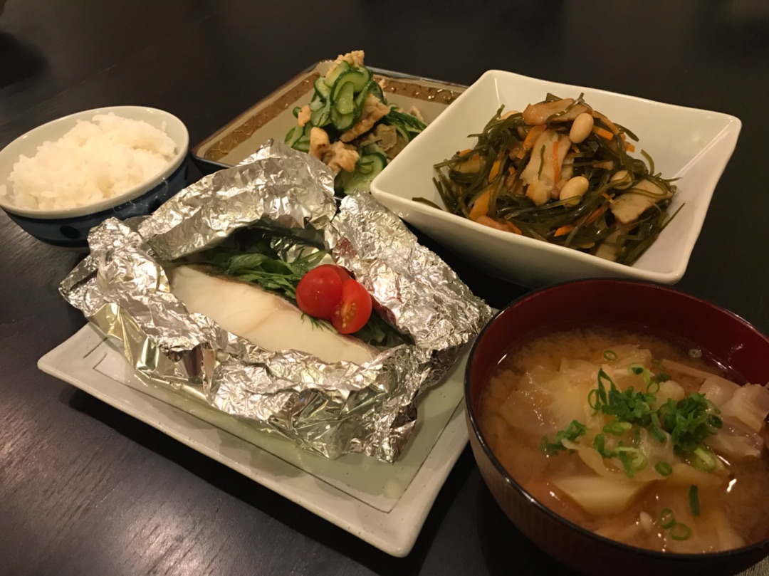 甘塩タラのホイル焼きです。下に玉ねぎとしめじ、中途半端に残っていた水菜、そしてホイルを開けたら彩りが非常に悪かったので急遽プチトマトを乗せてみました。ええ。完全に後乗せです