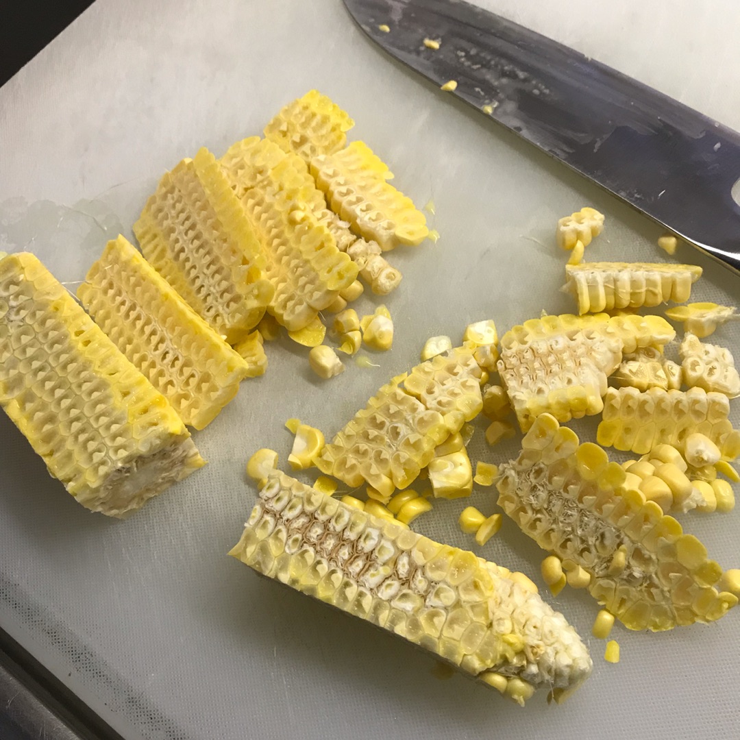 私は昨日は小さめのとうもろこしだったので、カットした時点では4枚とれたかと思ったんですが、
