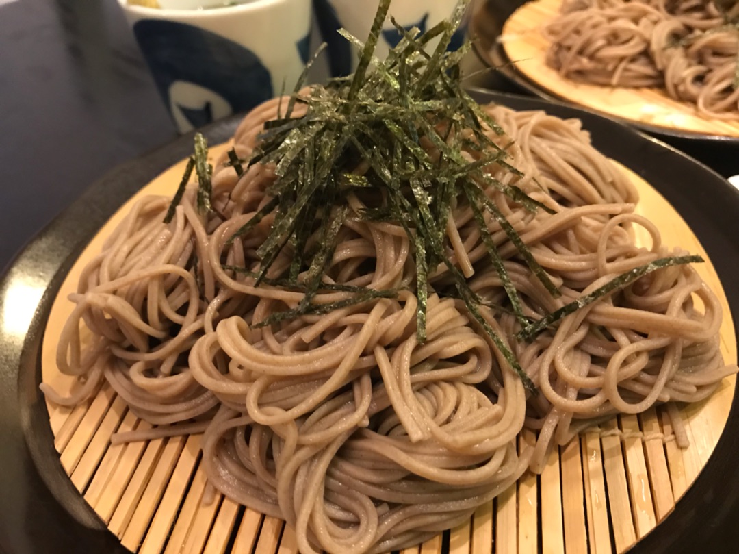 スーパーのやっすいおそばですが(笑)100均で買ったザルの上に一口サイズに束ねて盛りつければ何となくそれっぽいじゃん?