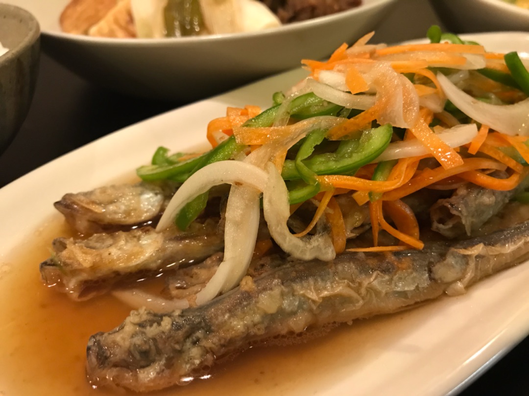 魚の南蛮漬けといえば小アジが定番ですが、アジはさばいたり骨とったりがめんどくさいので、我が家ではししゃもで代用しております~