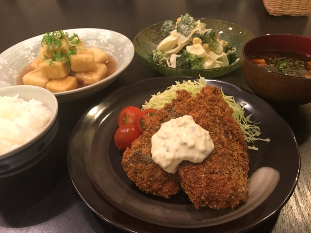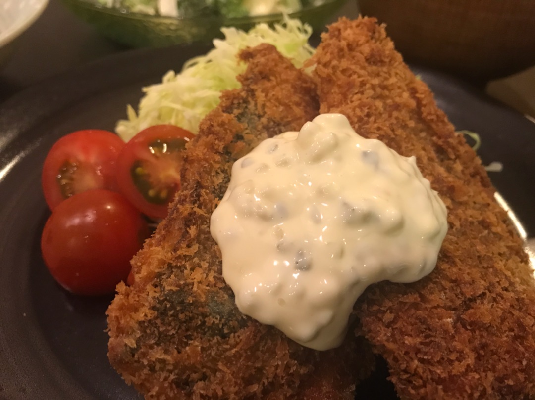 自宅で衣をつけて揚げたアジフライと