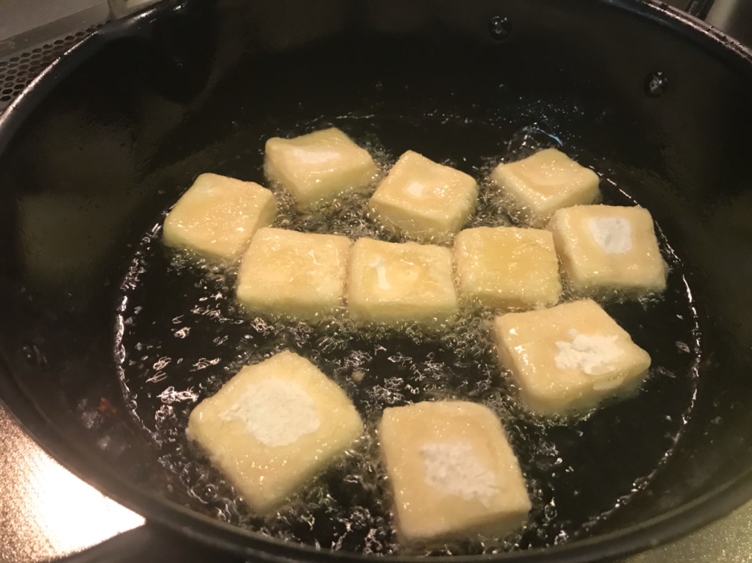注意するポイントは、片栗粉は満遍なくついてないと揚げるときに高野豆腐が油吸っちゃって出来上がりが油っぽくなりますのでご注意を