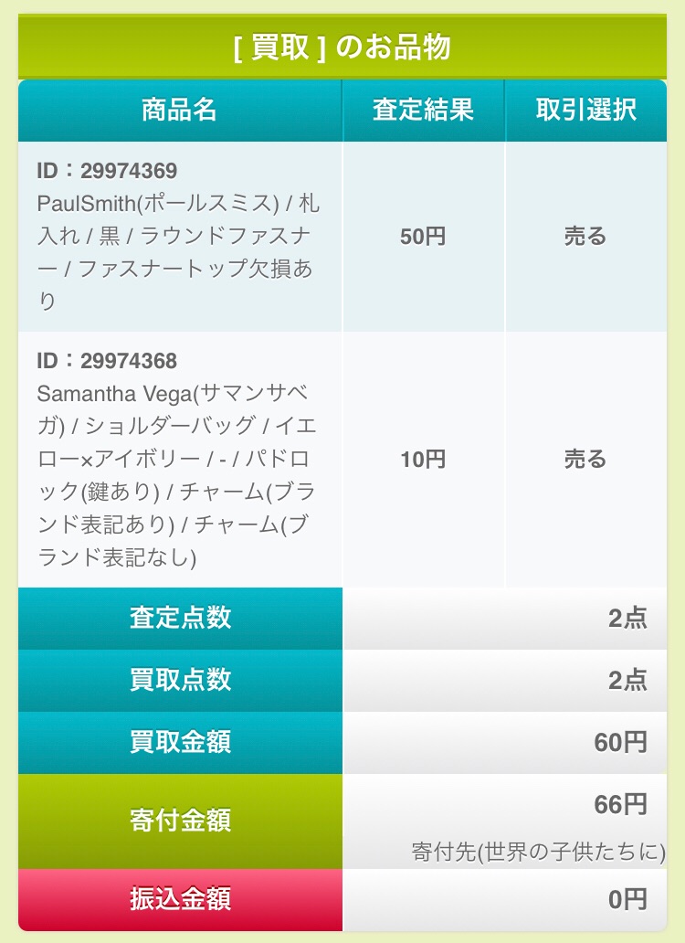 自分で捨てるには忍びないものも、こうやって査定がつけば、わずかな金額でも寄付という形で役に立つこともあります^^