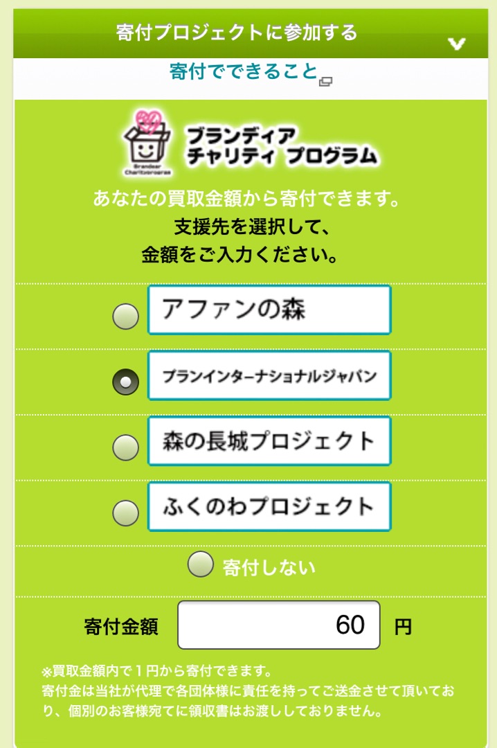 誕生日月だったので買い取り金額10%アップされて66円の寄付ができました~