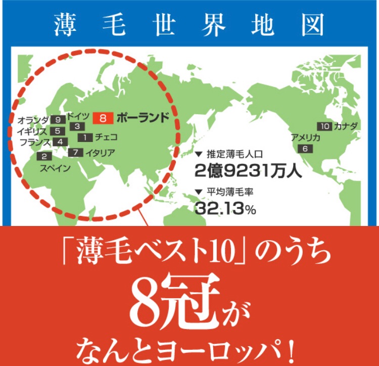 実はヨーロッパって薄毛率も高いってご存じでしたー?