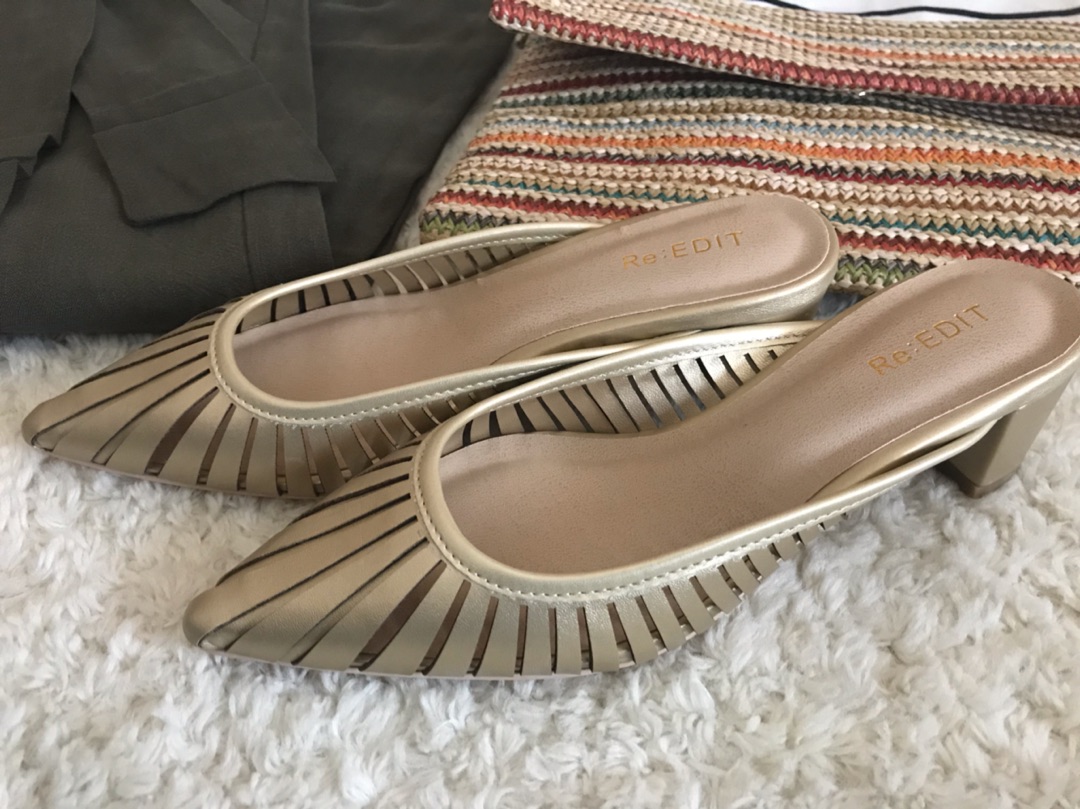 あと、こちらのミュールもクラッチとあわせるとゴールドなので高見えしそうです~