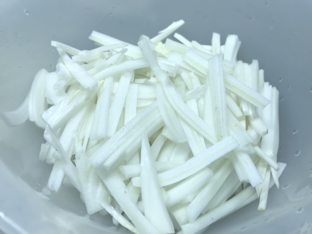 この後、葉っぱの部分も千切りにして(あときゅうりとかにんじんも)まぜまぜして一緒にしんなりさせてから、