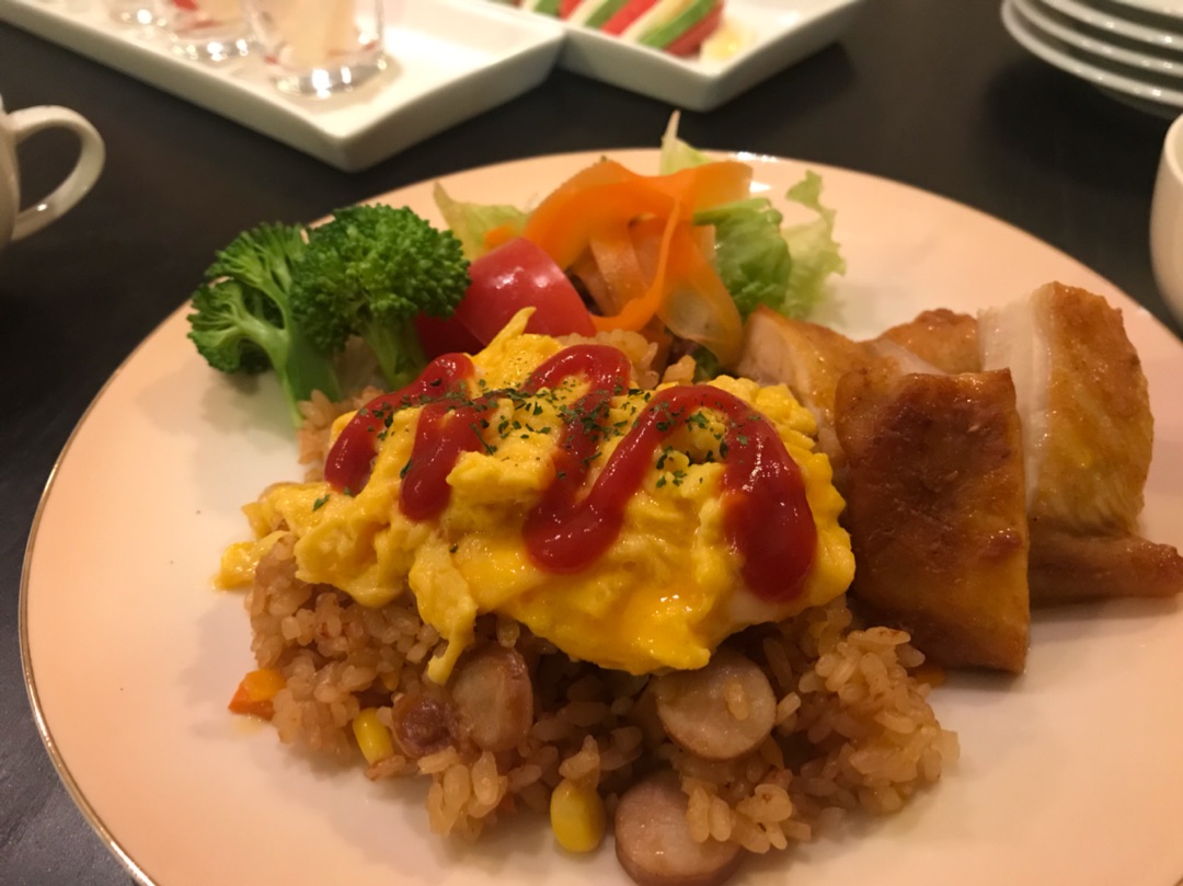 メインはオムライスで、こちらはいつもの炊飯器でケチャップライスはまとめて炊いて、とろとろスクランブルエッグを乗せただけです!