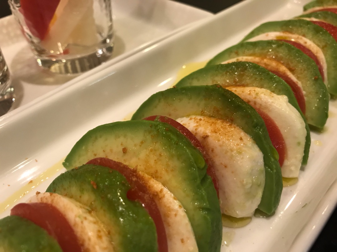 上からはオリーブオイルと、冬のエッセのイベントで試食したパウダー状のわさび風味のお醤油をかけています!^^